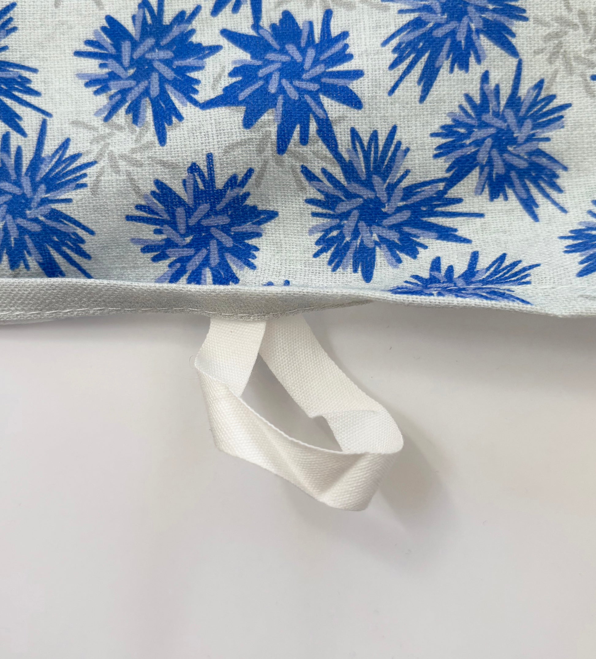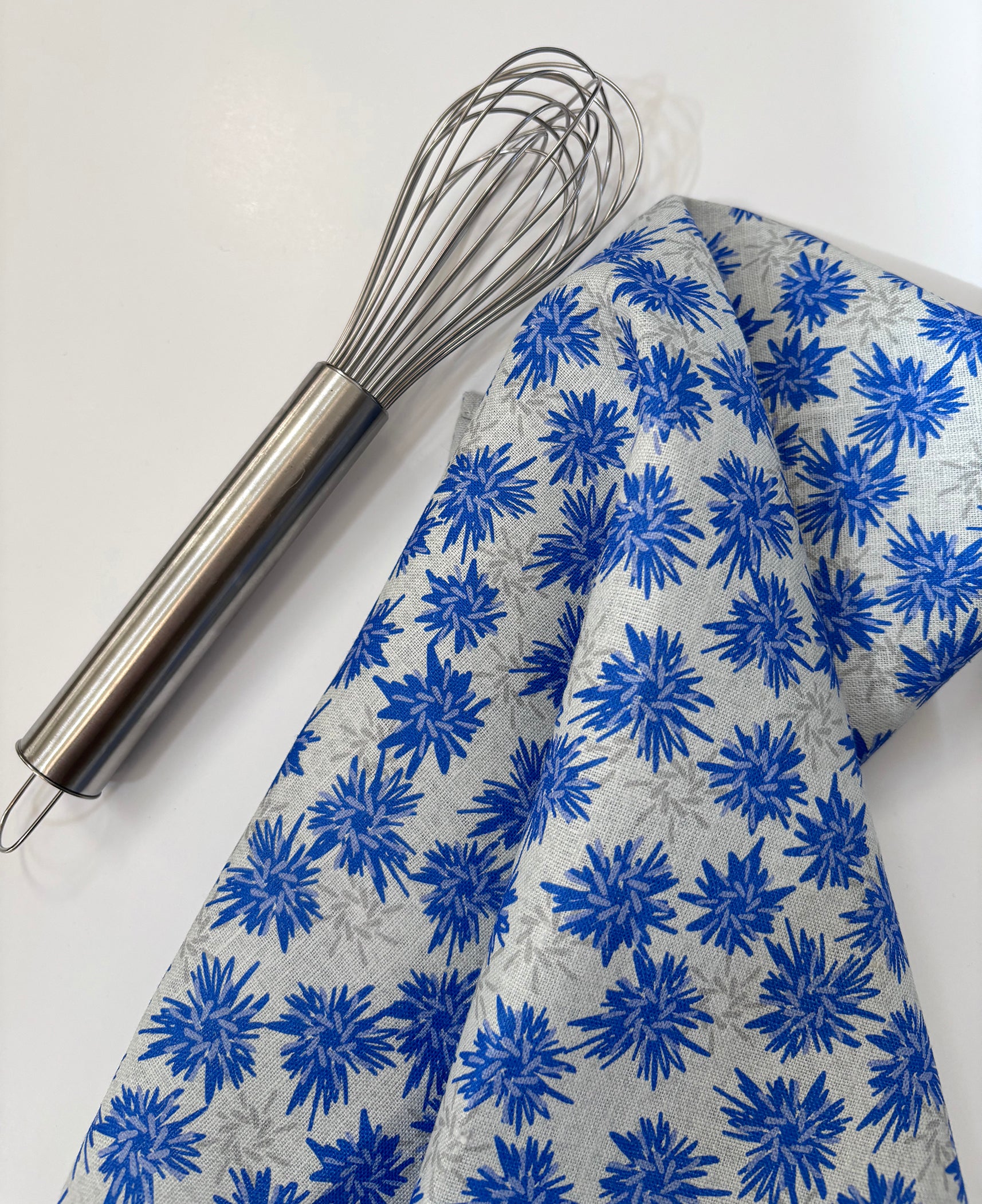 Rukki Fields of windswept cornflowers cover this 100% linen tea towel.